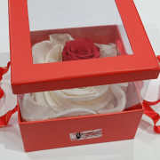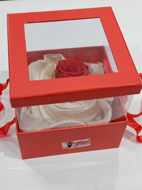 Možete od sad odabrati i posebno pakiranje za ovu ogrlicu. Dehidrirana ruža u ukrasnoj kutiji s prozirnim poklopce. Dehidrira ruža ne voli vlagu i ne treba vodu. Može trajati od jedne godine do tri uz dobro čuvanje u kutiji.Ogrlica je spakirana ispod cvijeta .