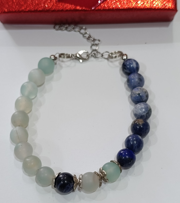 Narukvica Snage i Balansa – Ahat & Sodalit Ahat – Kamen zaštite, sreće i unutarnjeg sklada. Djeluje umirujuće, jača hrabrost, samopouzdanje i povezanost s prirodom. Potiče kreativnost, štiti od negativnih utjecaja i zračenja te donosi sreću i stabilnost. Sodalit – Kamen istine, jasnoće i koncentracije. Povećava fokus, pomaže u komunikaciji i ujedinjuje logiku s intuicijom. Idealan za učenje, mir i emocionalnu stabilnost. 🔹 Savršena za svakodnevno nošenje – unosi snagu, mir i jasnoću u vaš dan. 🔹 Ručni rad – prirodni kristali s pažnjom birani za balans tijela i uma. 🔹 Poklon s porukom – simbol zaštite, mudrosti i osobnog rasta.