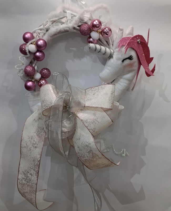 ✨ Ručno rađeni vjenčić “Jednorog snova” – čarolija nježnosti za dječija vrata ✨ Unikatni ručno izrađeni ukrasni vjenčić promjera 15 cm, stvoren s puno pažnje, mašte i ljubavi. Bogata višeslojna mašna u srebrno-bijelim tonovima unosi dašak elegancije, dok nježne ružičaste kuglice dodaju toplinu i razigranost. Poseban detalj – jednorog šivan ručno, simbol snova, čistoće i veselja – čini ovaj vjenčić pravom bajkom za tvoja vrata. Savršen kao blagdanski ukras, poklon za dječju sobu ili dekoracija doma koja unosi pozitivnu energiju i osmijeh. Svaki komad izrađen je ručno, s pažnjom na detalje – jer vjerujemo da ljepota stanuje u unikatnosti.