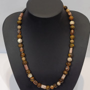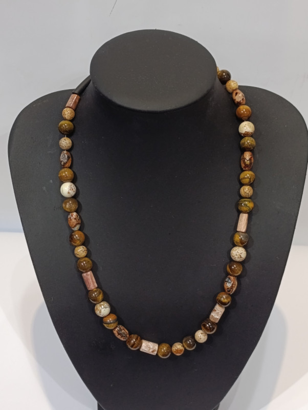 Ogrlica od Septariana, Jaspisa i Rodonita – zaštita i ravnoteža Ova elegantna ogrlica od Septariana, Jaspisa i Rodonita spoj je triju moćnih kristala koji daju stabilnost, zaštitu, emocionalnu snagu i unutarnji mir. 🟡 Septarian Donosi radost, unutarnje uzdizanje i jaču povezanost s Majkom Zemljom. Jača intuiciju i osjećaj budućnosti te pomaže u prilagodbi novim idejama. Izvrstan je za poslovni uspjeh, koncentraciju i mentalnu snagu. Podržava krv, bubrege, mozak i živčani sustav te djeluje kroz niže čakre. 🟤 Jaspis Kamen nježnosti, opuštanja i emocionalnog iscjeljenja. Poznat kao “veliki njegovatelj”, pruža tišinu, zaštitu i ravnotežu. Učinkovit je u čišćenju negativnih energija, podržava jetru, probavu, želudac i unutarnje organe te donosi brži oporavak. 🌸 Rodonit Kristal tolerancije, suosjećanja i emocionalne stabilnosti. Pomaže u prevladavanju konflikata, olakšava stres, tremu i napetost, te potiče konstruktivno rješavanje situacija. Harmonizira srce i misli, jača vitalnost i otkriva skrivene sposobnosti. Spaja nježnost (ružičasto) i prizemljenje (crno) u savršenu energetsku ravnotežu. Zajedno, ovi kristali čine ogrlicu koja pruža emocionalnu sigurnost, stabilnost, zaštitu, mentalnu snagu i intuitivno vodstvo — idealnu za svakodnevnu podršku i osobni rast.