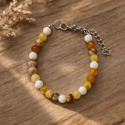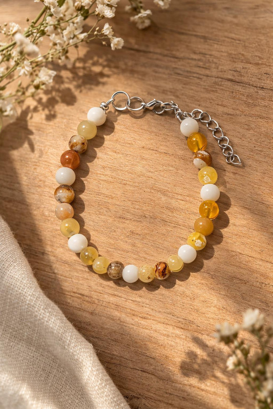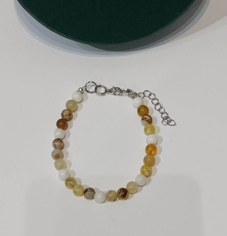 Narukvica od ahata i opala – priča o ravnoteži i svjetlosti srca Ponekad nam je potrebno samo malo nježne energije koja nas podsjeti da usporimo, udahnemo i vratimo se sebi. Narukvica od ahata i opala nosi upravo takvu energiju – smirujuću, toplu i inspirativnu. Ahat donosi stabilnost i osjećaj sigurnosti, dok opal unosi svjetlost, kreativnost i radost. Zajedno stvaraju harmoničnu kombinaciju koja potiče unutarnju ravnotežu i otvara prostor za pozitivne emocije. Ova narukvica nije samo lijep komad nakita – ona je mali podsjetnik na snagu smirenosti, ljepotu autentičnosti i svjetlost koju svatko nosi u sebi.
