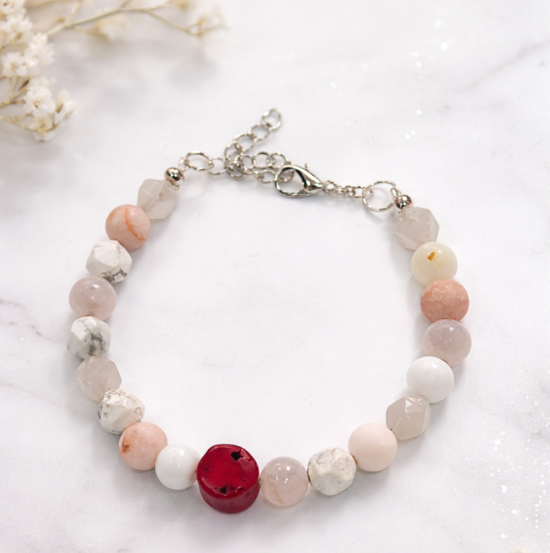 💗 Narukvica nježnosti, unutarnjeg mira i ženske snage ✨ Postoje dani kada trebaš tišinu… i oni kada trebaš snagu. A najljepši su oni kada pronađeš oboje – u sebi. Ova narukvica od koralja, mjesečevog kamena, ružičastog kvarca, rodokrozita i howlita stvorena je kao nježan podsjetnik da je tvoja snaga upravo u tvojoj nježnosti. U svijetu MelAureus by Melanija Maružin, vjerujemo da prava ravnoteža dolazi iz prihvaćanja sebe – baš takve kakva jesi. 💗