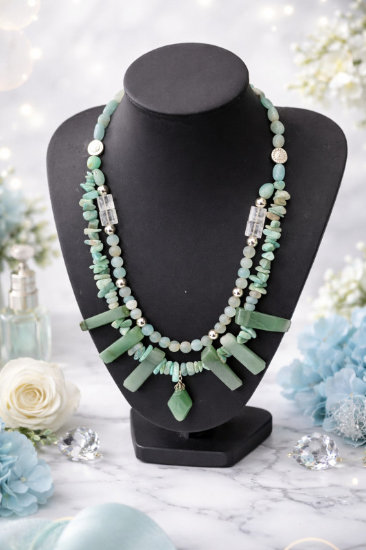 Ogrlica Amazonit – Aventurin – Gorski kristal