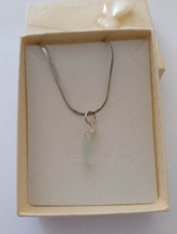 Akvamarin-Potiče brze intelektualne reakcije. Daje mir, umirujuću komunikaciju i štiti auru... Ogrlica je od nehrđajučeg čelika