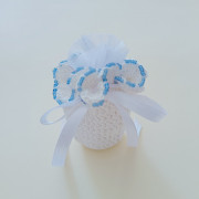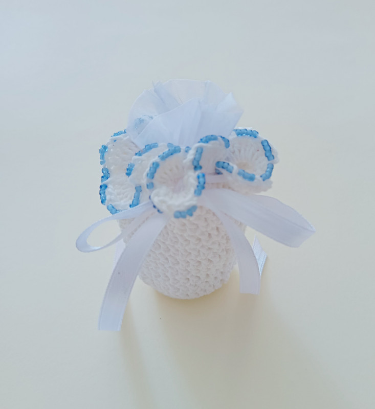 Heklana torbica, ručni rad 5 kom konfeta, natpis .Željeni natpis ostaviti u komentar kod narudžbe.