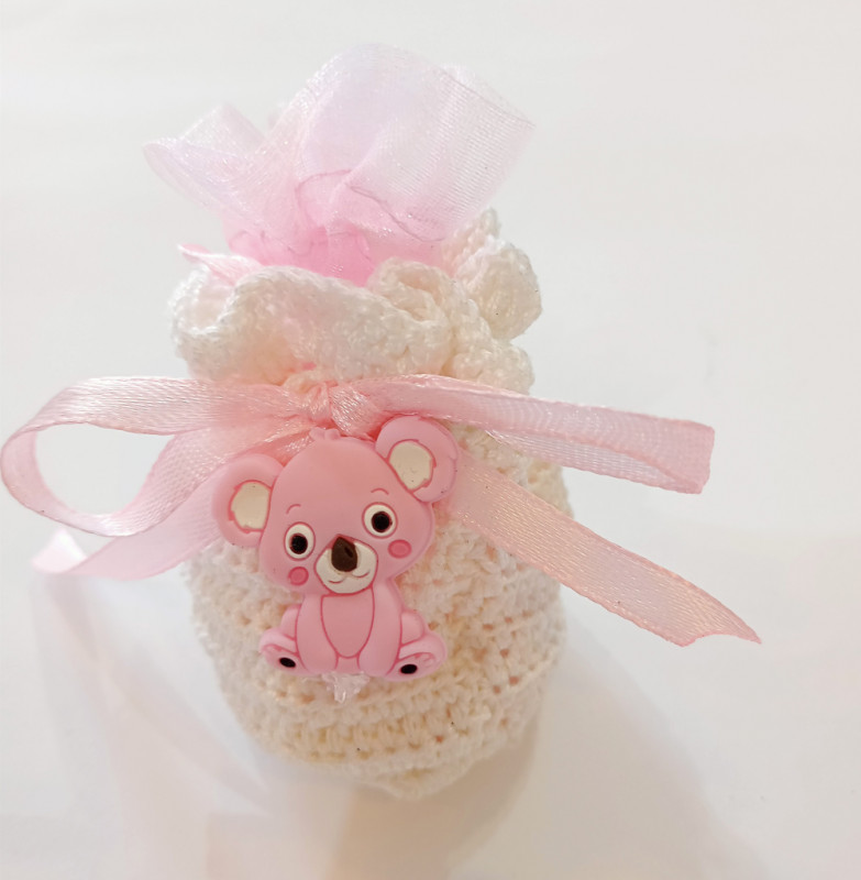 Heklana torbica, ručni rad 5 kom konfeta, natpis .Željeni natpis ostaviti u komentar kod narudžbe.