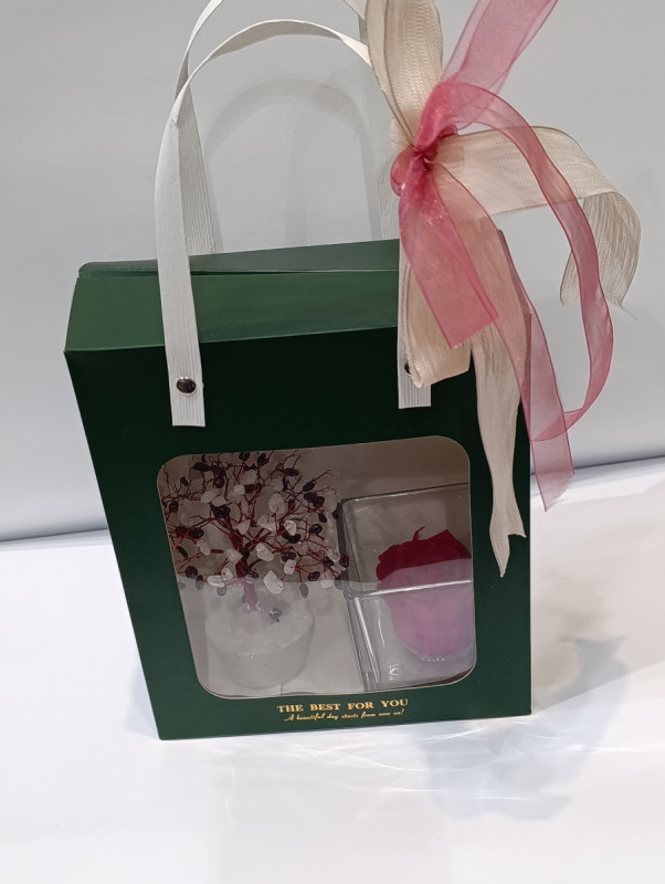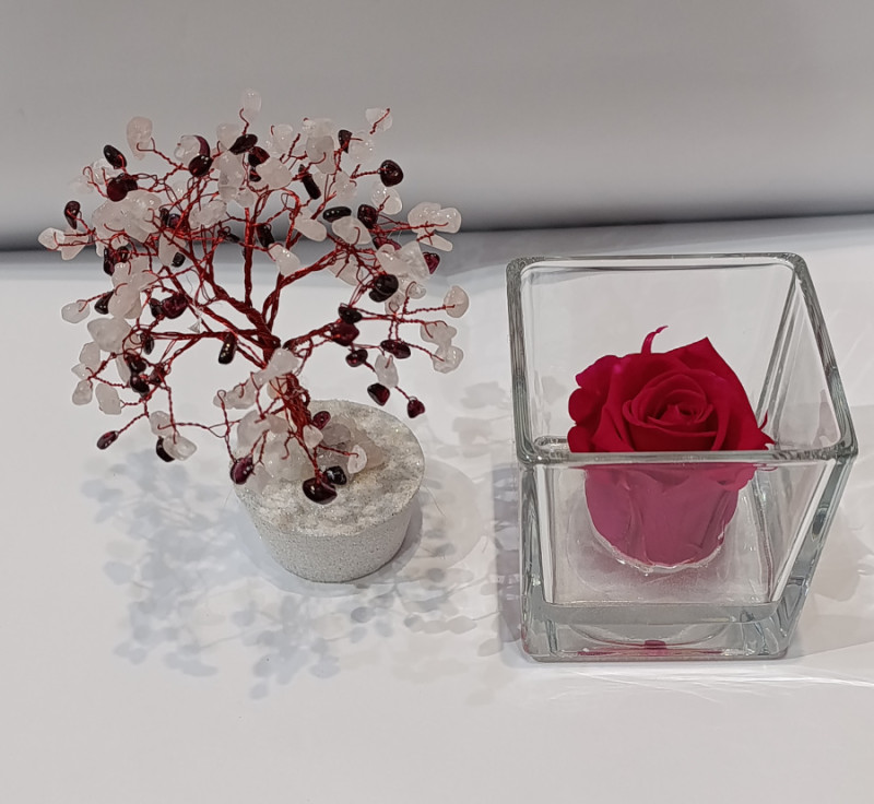Drvo kristala- srce žene ručno rađeno visine cc 15 cm s opisno katicom i dehidrirana ruža u staklenoj vazici . Dehidrirane ruže su trajne i do 5 godina. Prigodan set za darivanje ( rođendan, godišnjice, dan žena, majčin dan)upakiran u ukrasnu kutiju. Poklon s porukom