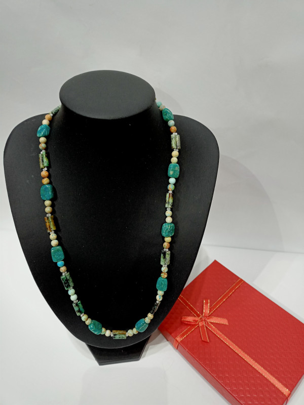 Amazonit je kamen istine, časti, komunikacije, cjelovitosti i poštovanja. Povećava intuiciju, psihičku moć i sposobnosti, kreativnost, intelekt. Povezan je s grlenom čakrom i kao takav koristan u komunikaciji. Stavlja u red fizičko i astralno tijelo. Jaspis je kamen nježnosti i opuštanja. Donosi tišinu, utjehu, cjelovitost, izlječenje, blage završetke. Zovu ga još i velikim njegovateljem zbog njegove zaštitničke energije. Mjesečev kamen povećava žensku energiju, osijetljivost, intuiciju, psihičke sposobnosti. Štiti tijekom trudnoće, rođenja, putovanja na moru. Povezan je sa svim vrstama ljubavi.
