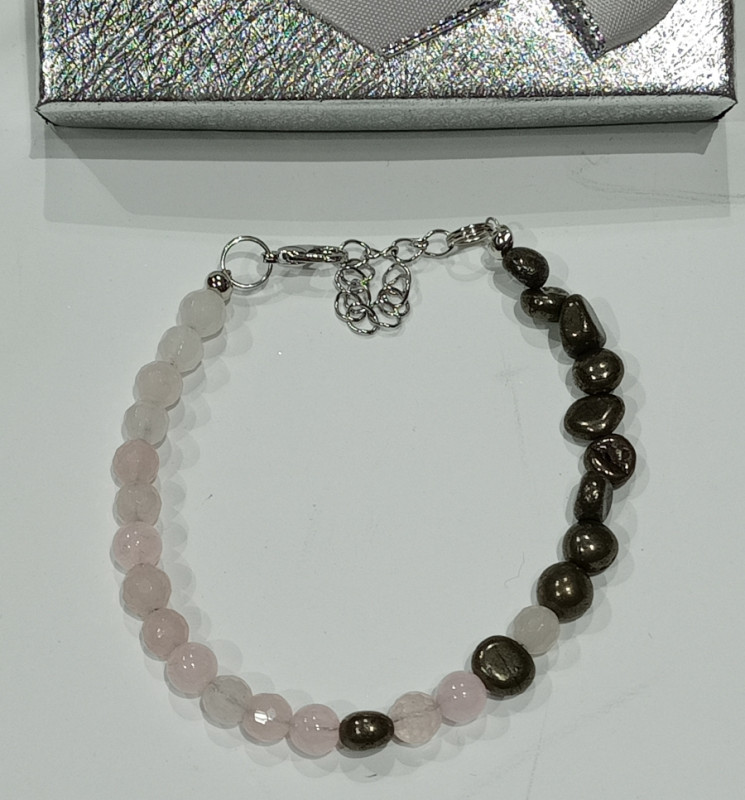 Narukvica od Ružičastog Kvarca i Pirita 🌸 Ružičasti kvarc – Kamen ljubavi i emocionalnog iscjeljenja. Pomaže otkloniti blokade u ljubavi, donosi mir i sreću te jača srčanu čakru. Idealno za samopouzdanje, podršku djeci i odraslima s emocionalnim ranama te podizanje životne energije. ⚡ Pirit – Kamen zaštite i snage. Odbija negativnu energiju, potiče kreativnost, samopouzdanje i mentalnu jasnoću. Štiti od opasnosti, pruža energiju i podiže raspoloženje, dok istovremeno podržava zdravlje tijela. ✨ Snaga kombinacije Savršen spoj za ljubav i sigurnost! Ova narukvica unosi mir, podiže energiju i štiti od negativnih utjecaja, dok istovremeno potiče osobni rast, kreativnost i emocionalnu ravnotežu.