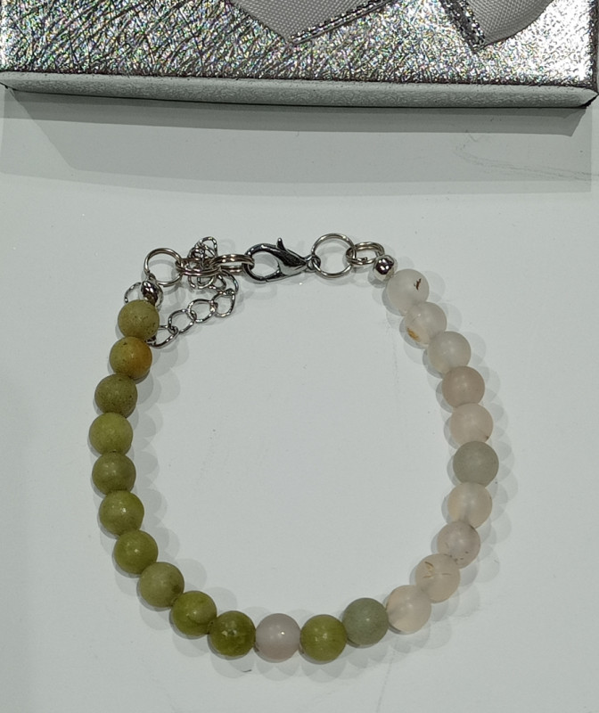 💚 Žad Simbol čistoće, smirenosti i mudrosti, žad je povezan sa srčanom čakrom, donosi ljubav, vjernost i velikodušnost. Ovaj kristal štiti nositelja od negativnih energija, privlači sreću i jača prijateljstva. Pomaže u postizanju emocionalne stabilnosti i zadovoljstva sa sobom. Žad je poznat po svom pročišćavajućem djelovanju na tijelo, posebno na bubrege, pluća i imunitet. Pomaže kod umora, stresa i problema s živčanim sustavom, kao i kod plodnosti i poroda. ✨ Ahat Zaštitnički kamen koji unosi mir i sklad u život. Posebno se koristi za zaštitu djece i jačanje veze s prirodom. Ahat potiče hrabrost, energiju i samopouzdanje, dok smanjuje strahove i ljubomoru. Povećava kreativnost, intelekt i emocionalnu stabilnost. Također je koristan za jačanje zubi i desni, poboljšava vid te pruža zaštitu od tehničkih zračenja. ✨ Značenje Narukvice Savršena kombinacija Žada i Ahata stvara energiju mira, zaštite i ravnoteže. Ova narukvica ne samo da donosi unutarnju snagu i spokoj, već i podržava vaše fizičko i emocionalno zdravlje. Idealna za svakodnevno nošenje, donosi sreću, sklad i pozitivnu energiju! 💎