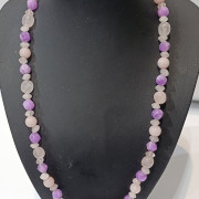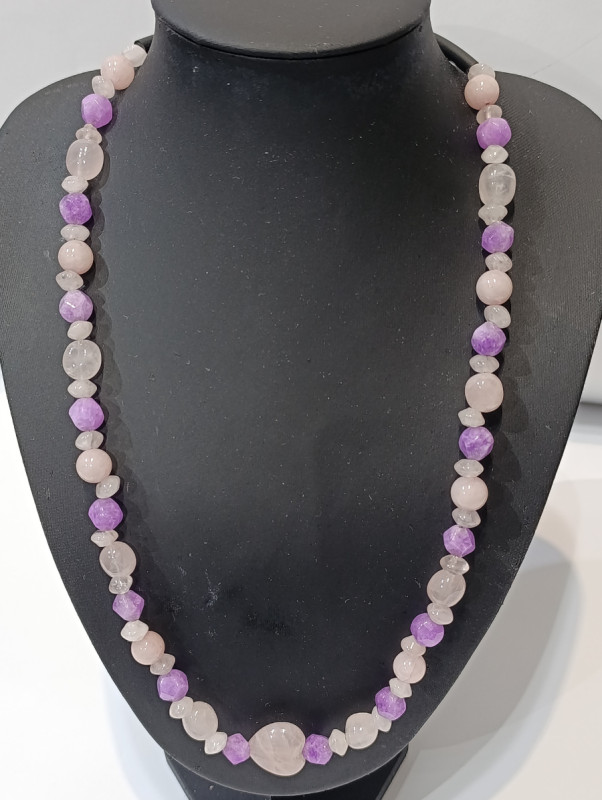 Postoje ogrlice koje krase samo izgledom. A postoje one koje osjećaš – nježno, svaki put kad ih nosiš. Ova ručno rađena ogrlica od ametista i ružičastog kvarca, dužine 60 cm, stvorena je upravo za te trenutke. Lagana za nošenje, ali prisutna – svaki kamen pažljivo je odabran da donese mir, ljubav i unutarnju ravnotežu.